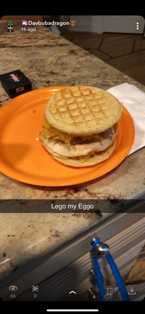 Ok, so today I made what I believe to be the best egg sandwich I have ever made in my life. So first I decided why not put hash browns on this one, so I did. I cooked up some hash browns, which actually take super long to cook, and made some eggs. After that the turkey was thrown in the pan followed by my sister going nuts in the kitchen wanting me to make her ramen. UGH, Anyway I ended up making Eggo waffles and using that as the bread for my sandwich. Twas amazing.
